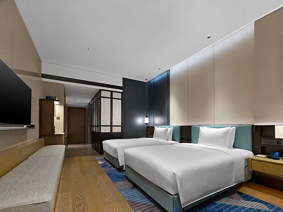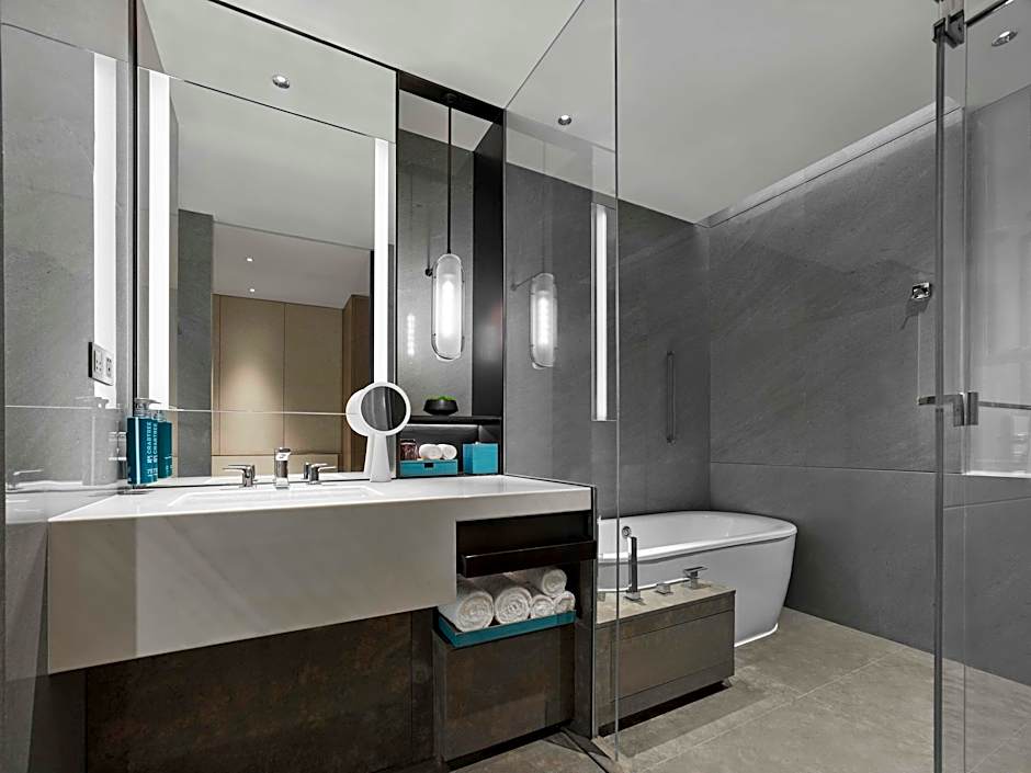 Floor-to-ceiling windows offering Macau sea view from bedroom . Enjoy your favorite shows on our 55 inches TV, Intelligent Closestool, have a relaxing bath in the Cast Iron Enameled Bathtub. This room offers: